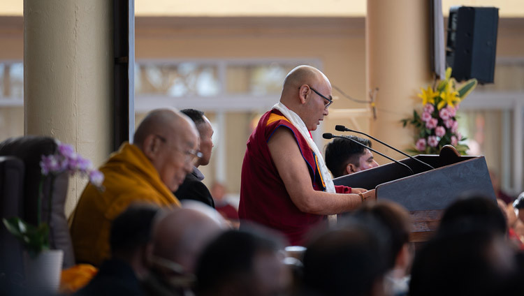 Il Sikyong Penpa Tsering ha letto la dichiarazione del Kashag in occasione della giornata odierna, prima in tibetano e poi in inglese. Ha esordito sottolineando che questo giorno propizio, che segna il 75° anniversario dell'assunzione da parte di Sua Santità il Dalai Lama della Guida spirituale e temporale del Tibet, viene celebrato anche nell'ambito dell'Anno della Compassione, che celebra il 90° compleanno di Sua Santità.